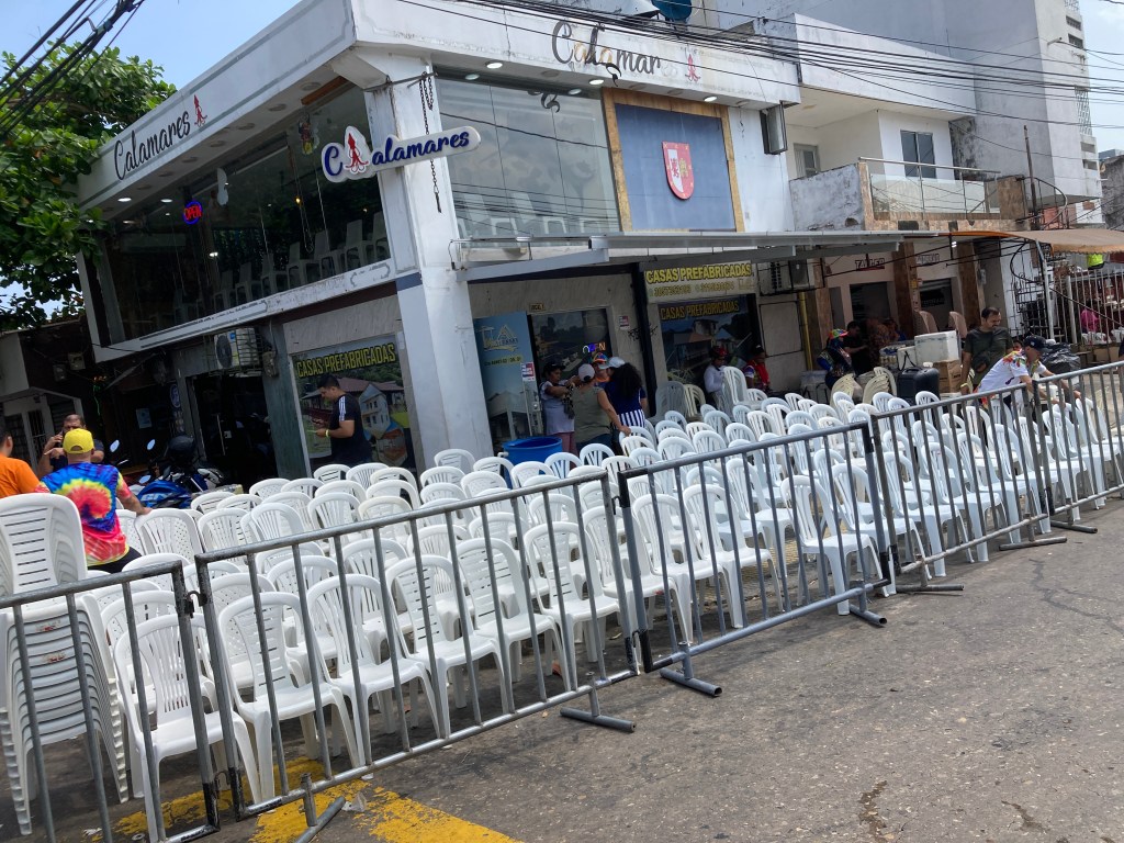 The next day we got carnival ready by scoping out the route early in the day in an attempt to eye up a good vantage point (spoiler.. it didn’t work). The figures are impressive, if not somewhat daunting. 15,000 performers. 24,000 plastic chairs on the pavements. Who knows how many more lining the route (5 million visitors for all carnival events). After getting suitably attired, but still sticking out like sore thumbs as virtually the only gringos in town, we thought getting to the route an hour early would let us bag a chair. We thought wrong. Despite there being loads of empty ones still, we didn’t realise that you need to get there 3 hours early to stand a chance really. The empty ones were saved.