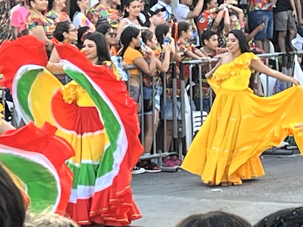 As the night rolled on, we escaped the plastic chairs and roamed a bit. Down every sidestreet residents were having their own little parties with friends and family, music blaring, dancing, drinking. The atmosphere was electric and so energetic and life affirming. All ages involved to the max. I practised my Spanish on a group of child-like police officers who were delighted to put their Duolingo English to the test.