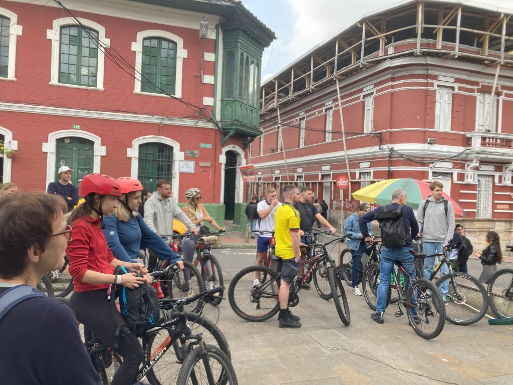 After a cruise around the main official and historic buildings and some brief Colombian history – apparently the Colombians have a toxic relationship with Simon Bolivar, one of the founding figures of the country (and others in the region) – we cycled across town and out of the main shopping strip. Pausing at some traffic lights (for once) the word came back from our leader that we were going to cycle through a less a salubrious part of Bogota and we should stick close and watch our wallets. Also to not take any photos because were passing through the red light area. Warnings heeded we must have looked a real spectacle, a crocodile of nervous, pale westerners surging through the throngs of a tough looking neighborhood. “Red light district” was a bit of a stretch. I did spot a couple of scantily clad and rather sad looking women on a corner as we pedaled past, phones safely in pockets. I’m not sure the Belgian guy on the bike ahead appreciated my humour … “were you tempted?”… “no me neither actually”.