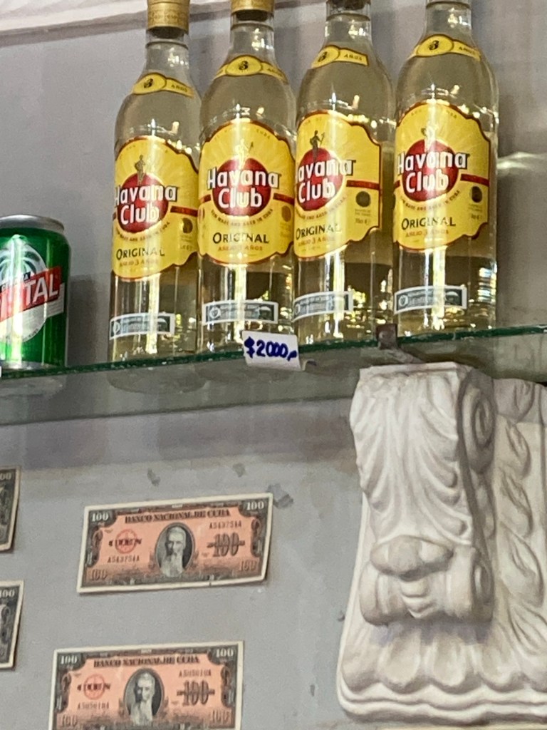 Some things are cheap. Money is a complex thing in Cuba, official outlets offer the official exchange rate, whilst changing on the black market can get you double that rate. As a result, a can of beer in a bar will usually cost 70p-£1.50. My adopted local yocal unfortunately doesn’t sell spirits by the shot, just the whole bottle at a time. Happily a bottle of Havana Club rum will set you back £5.