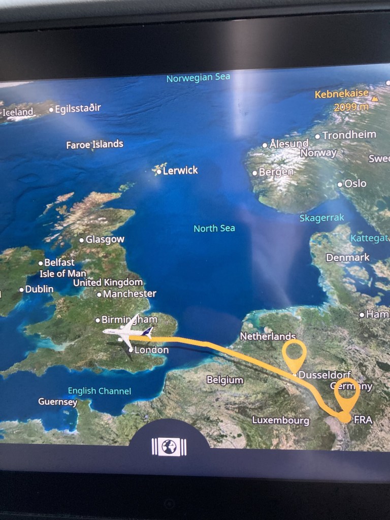 But somehow the (female) captain had other ideas. She must have eaten her weetabix that morning because I was gobsmacked to see the streets of Frankfurt looming large, a full 40 minutes earlier than expected. How do you make up 40 minutes on a 1 hour 45 minute flight!? Fly it like you stole it. So I was again in with a chance of actually making the flight. I’d have almost 30 minutes from runway touchdown to gate closing. Can it be done!? I certainly didn’t fancy being stuck in Frankfurt so the race was on:
