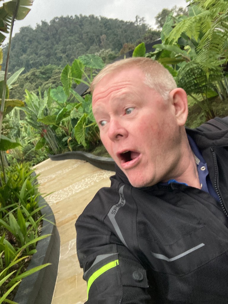 And the landscape is simply stunning. Lush green vegetation overhangs the track, endless views across the green valleys and treacherous roadside drops of 1000 feet plus focus the mind. The track is tricky in parts and mostly on the right side of my off-road abilities. Biking just doesn’t get much better than this!