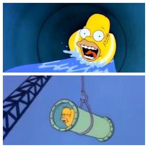 As I walked alone up the deserted paved path towards the top of the slides these things played on my mind a bit. Two of the three slides looked fully enclosed and is it my imagination or are they much narrower tubes than we have at home? I pass this off as being related to my childhood memories of waterslides, everything seems bigger when you’re a kid. I arrive at the entrance to the slide, no staff member in sight, or any other person for that matter. Suddenly the plastic of the slide, the bolts the fixtures don’t seem all that secure. These slides are built for Colombians, which by and large are about half the size of me (in every dimension). I have visions of not going fast enough and grinding to a halt halfway down the slide, stuck for hours until a sufficient number of kids pile up behind me to get me going again or worse still a Homer Simpson removal.