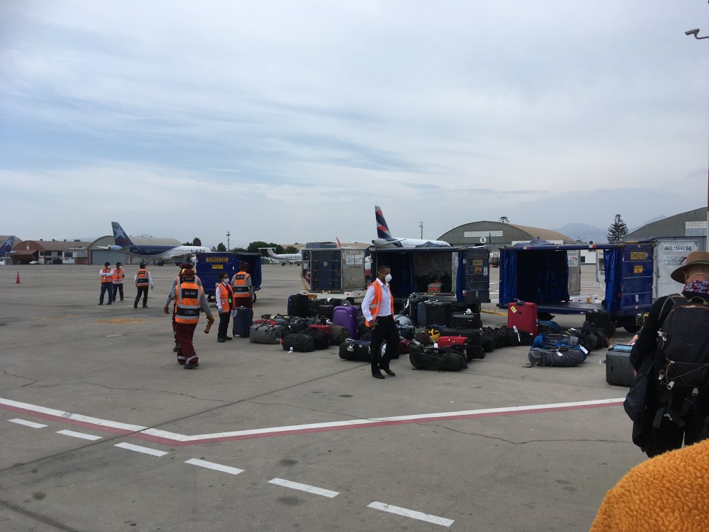 After much queuing a flight took us from Arequipa to Lima. Then there was an unusual scramble on the runway as we grabbed our own bags and boarded the flight back to the UK.