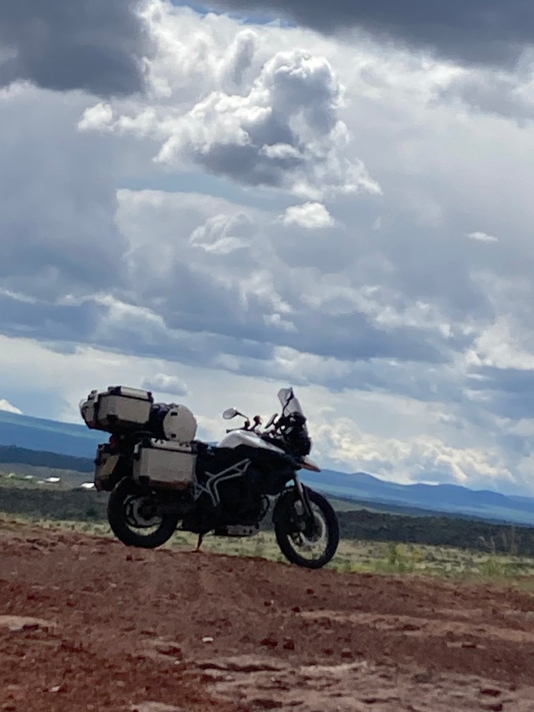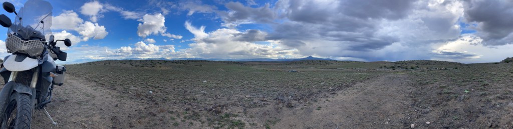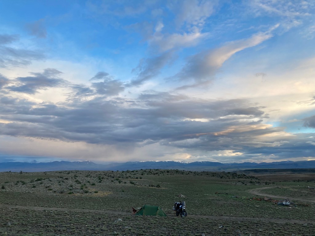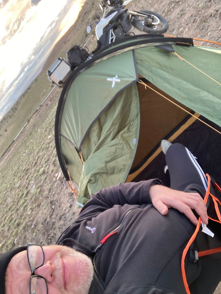 The route to the camping spot took me along some lovely deserted roads, across plains and hills in weather which, for just about the first time on the trip, was kind. For me it’s always a bit of a sketchy time to find a suitable wild camping spot, there needs to be some kind of half decent road or track to nurse a fully laden Badger down. Sadly my off-road skills can be most generously described as “limited”. The spot also has to be away from any dwellings our transport routes. The best outcome is to remain undisturbed. I imagine if I did more or it, it would become easier but I always feel uneasy setting up camp, waiting for some stranger (or wild animal!) to come along and disturb the peace. I would definitely be at their mercy.