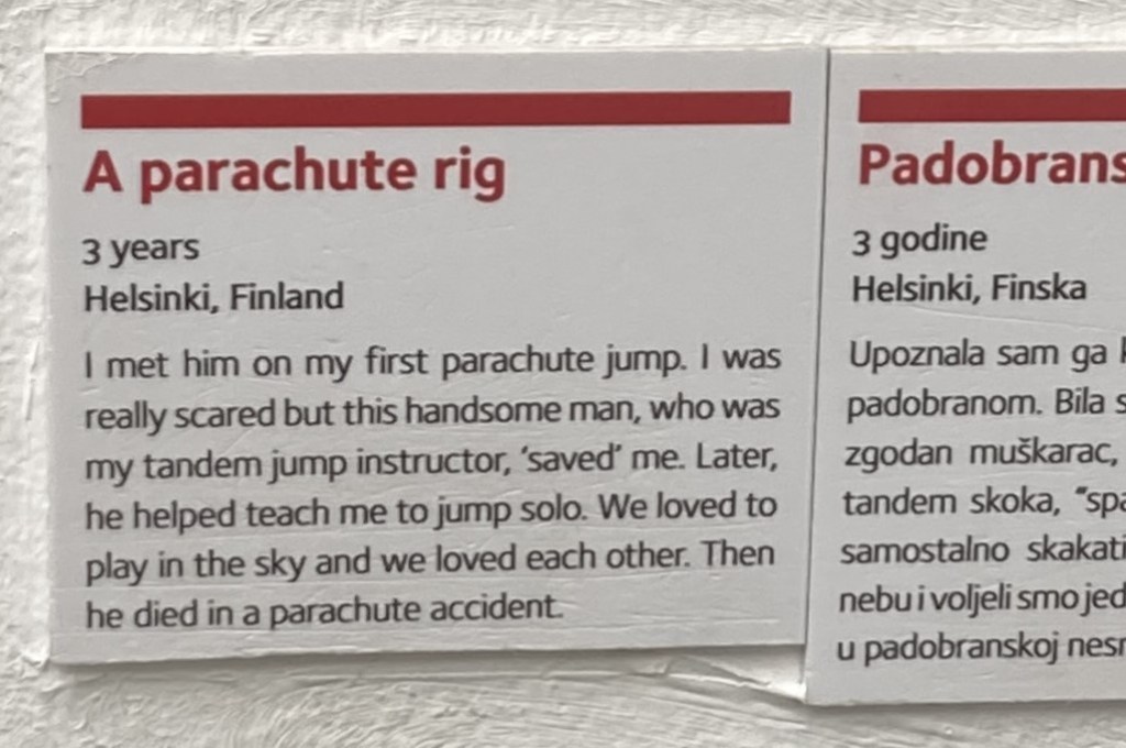 There was one bright moment to this overwhelmingly disappointing stop – The Museum of Broken Relationships. Never has a museum found it so easy to make me blub. OK, OK I know I’m a big softy really despite my tough exterior and these days it doesn’t take much to make be cry, a good human endeavour sporting story is enough. But, these human stories shared in just 1 object and a few words would be enough to set most people off.