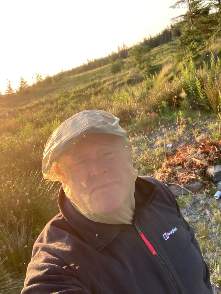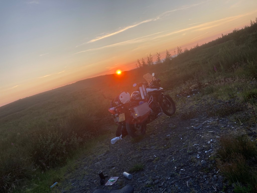 And so off the ferry on into Ireland. It doesn’t take long to realise that these are some the best condition roads I’ve ever ridden. Smooth, new, well signposted, polite drivers blimey what a treat after the snarled up motorways and A roads of England. So head down and chasing the setting sun I blasted west to the little bit of hidden forest I’d earmarked for my wild camp. I made it just before sunset and started setting up my tent quickly while there was still light. It didn’t take long to realise that I had company. Lots of company. In the shape of the tiny terrors they call midges. FFS! These are thee scourge of me, I must be so tasty to them. Thankfully I did anticipate this so had a midge face net to hand, but bloody hell, when you’re knackered from a massive ride and just want to chill, they are an absolute nightmare.