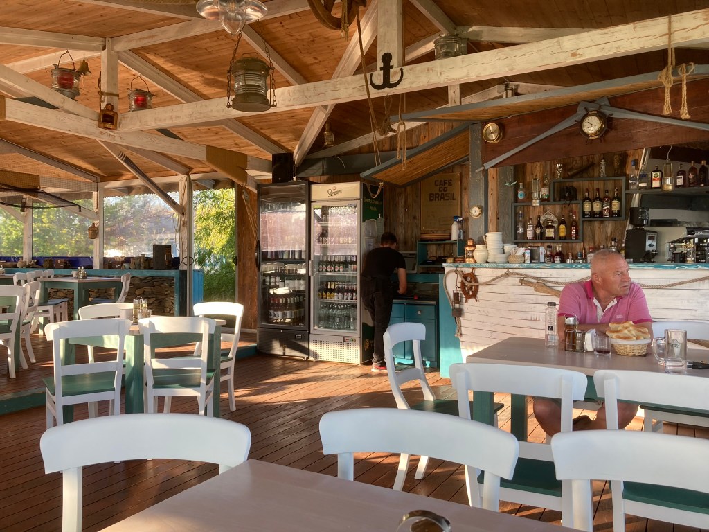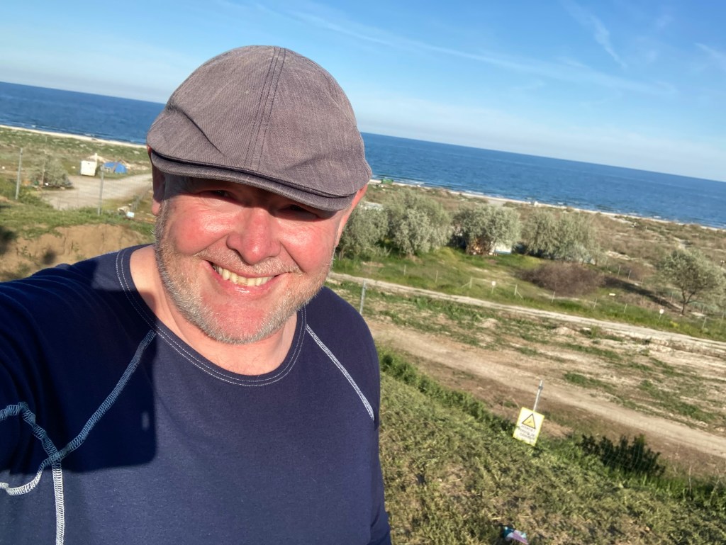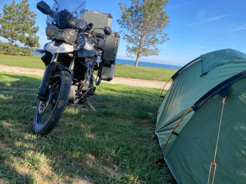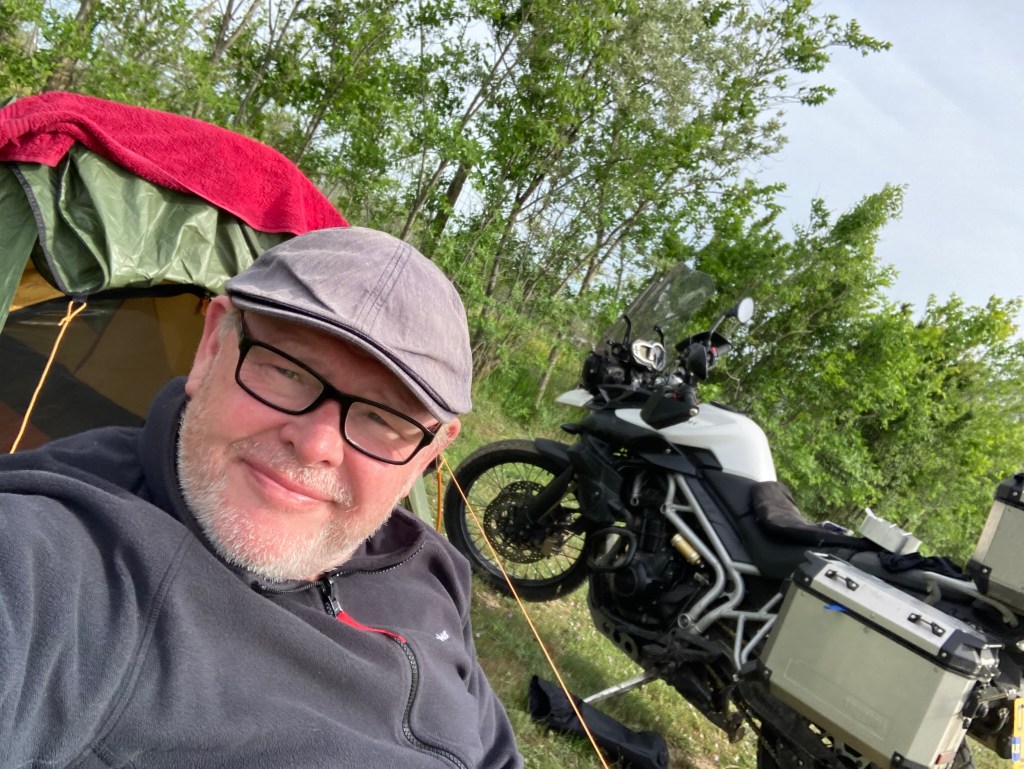 And so, onward up over the snowy Carpathian mountains. Far too much traffic to be enjoyable on the bike, but pretty enough. Then the long run down to the shores of the Black Sea. I was fortunate to catch the weather in a good mood. For the first time on the trip the thermometer tipped into double figures, which is just as well cause I’m camping tonight. A fine feed at the lakeside in a lovely wooden restaurant and into my too thin by far sleeping bag. I didn’t pay too much attention to the fly sized mosquitoes that are ever present, but they certainly did come back to bite me. I had no idea that they could bite me through my shirt while putting up the tent, but oh yes they can… they certainly can.