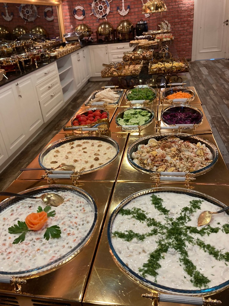It’s a rather uneventful and increasingly scary route heading East along the Black Sea coast. A ridge of mountains a mile inland from the sea means that all traffic is forced onto the main dual-carriageway artery. This might be OK except that the traffic includes a huge amount of thundering lorries who have very little respect for a puny motorbike. It seemed the further East I got the less they cared. Throw into the mix heavy rain showers and what starts as mildly annoying fully loaded artics 6 feet from your tail is just plain life threatening. The views over the sea were nice in parts and some of the little seaside towns seemed nice enough too. I stayed in one half way along the coast and thanks to an upgrade from booking.com I ended up in possibly the biggest hotel room I’ve ever stayed in, complete with balcony and sea view. The breakfast was also something to behold.