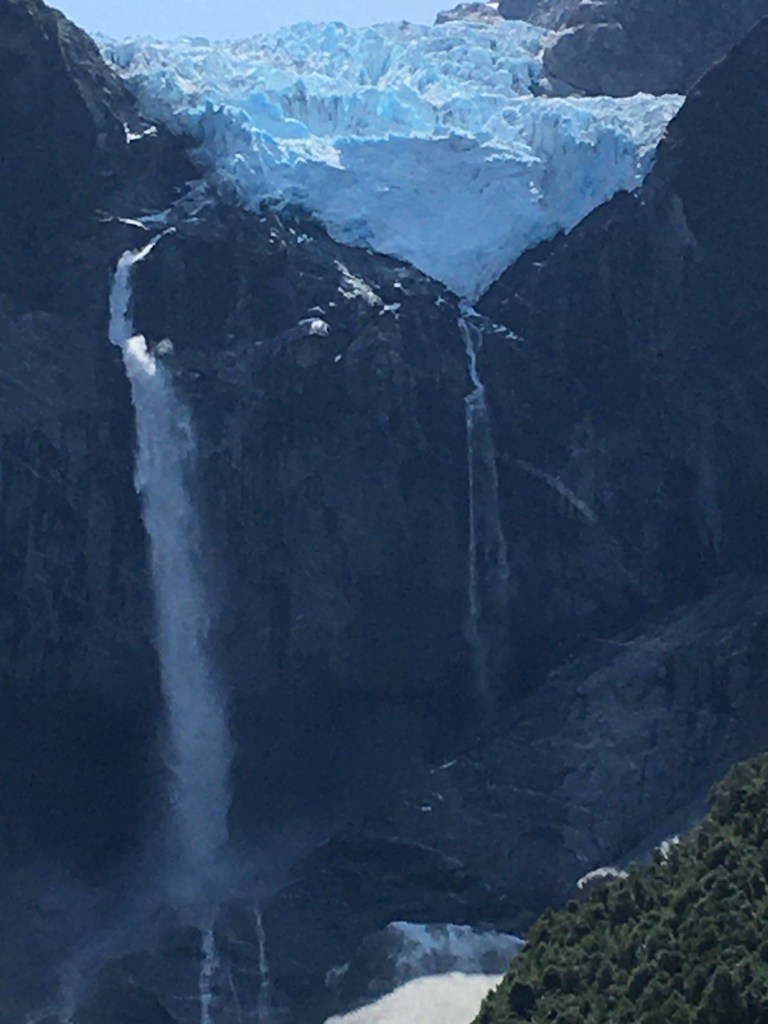 The first part of the road to this bustling town is smooth tarmac, not a car on the road, pure biking bliss. I’d planned to stop at Ventisquero Colgante (hanging glacier) in one of the many national parks and hike the two and a half hour round trip to see the glacier. The queue to get in was moving really slowly, I couldn’t figure out what was taking so long until I got to the front and faced the 20 questions… Where do you live? Where did you travel from today? Where are you going after this visit? What’s your passport number? What’s your vehicle registration? Now call me paranoid but I’m not overly happy with providing this kind of detailed information for no apparent reason to a state official in a country that has a totalitarian regime in its recent past. Why use forestry officials to data gather on the population?