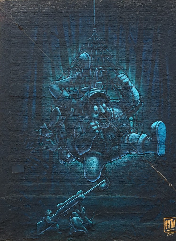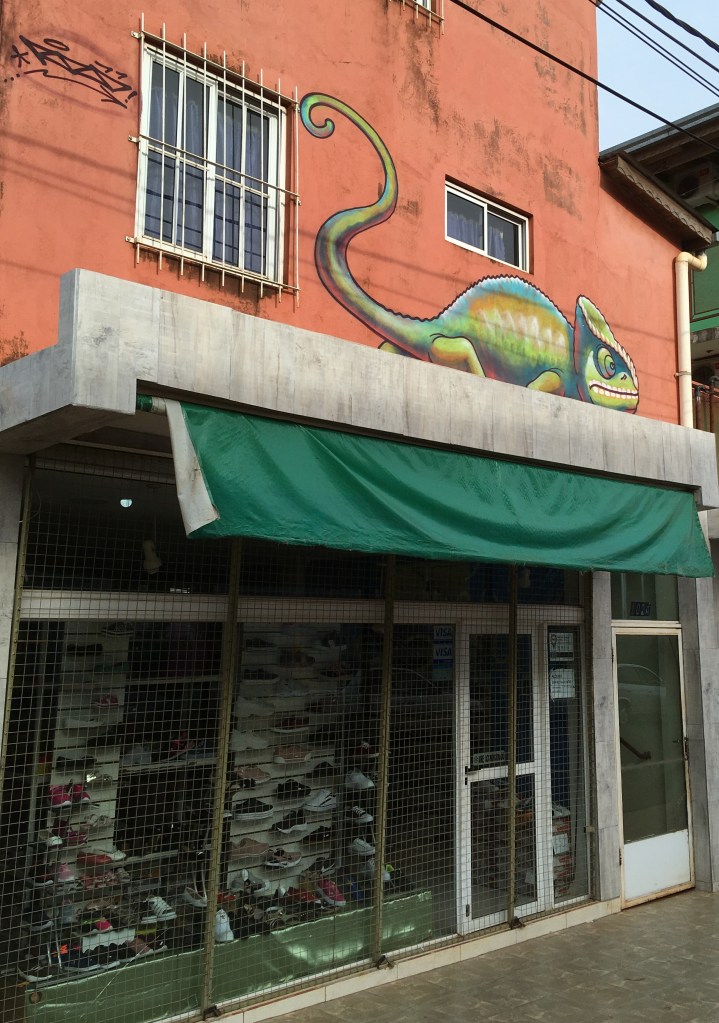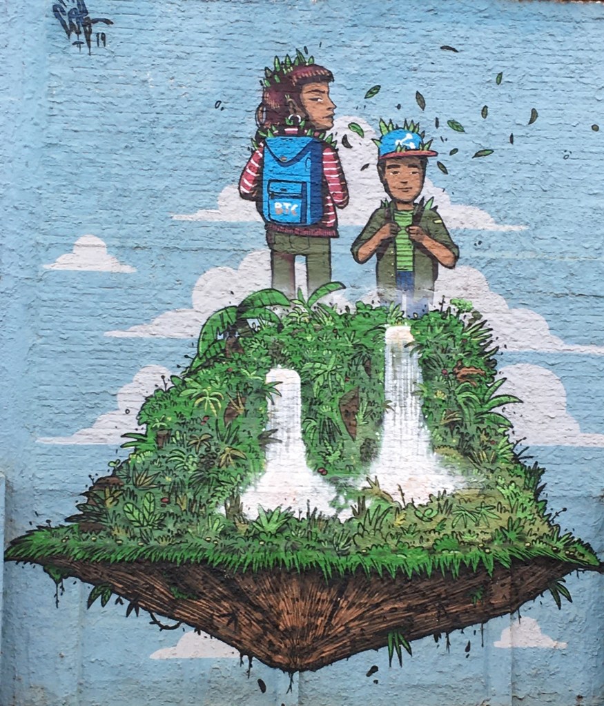 In the back streets of Iguazu town itself, far from the tourist trail I was lucky enough to stumble across some more amazing street art which is fast becoming a real delight of this whole trip. It appears that the artists were all working to the same theme, which to my mind speaks to the challenges of maintaining the balance of nature, indigenous peoples and the impact of the west – that’s my take anyway, what’s yours? Comments below please 🙂