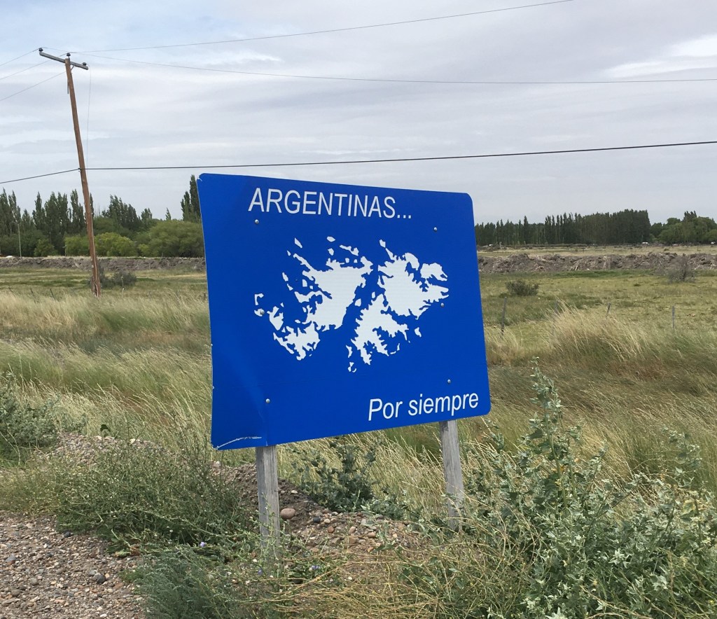 As I passed through the small towns to my first overnight stop the theme continued. Shiny, new, official signs; massive monuments; bumper stickers on brand new cars; currency notes! Clearly Argentina has not forgotten. It did make me reflect a little bit on the whole Brexit stuff, it only took a few signs to make me feel anxious, unwelcome, mildly threatened, because I took each sign as a personal attack on me, illogical as that is. I imagine it’s how some europeans felt during the worst of the Brexit jingoism. We really should be careful what we put on posters and signs because people will take it personally.